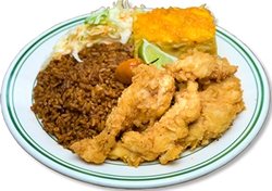 Meals served with choice of Rice, Grits or Fries along with 2 side orders or three side orders only.